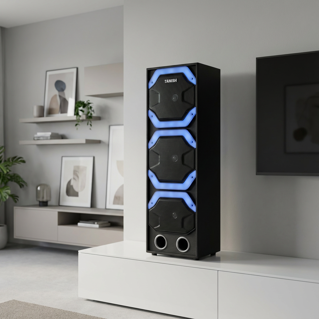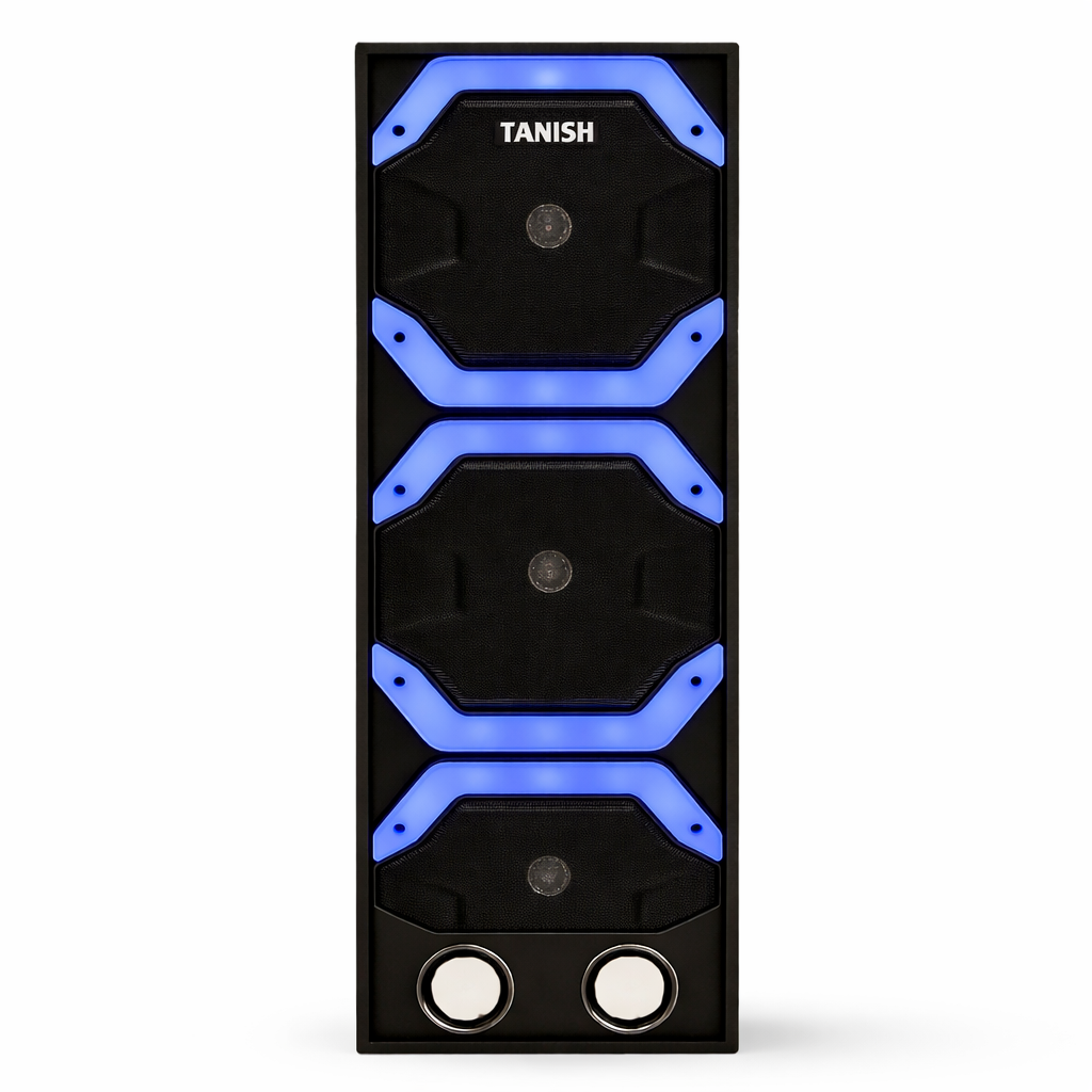 The Tanish Altis is engineered for listeners who want bold sound output with a modern, aggressive design. Built with a triple-driver tower layout and a deep-bass architecture, it delivers room-filling audio while maintaining clarity at high volumes. Its premium cabinet and LED-accented speaker grills make it ideal for home entertainment and party setups.