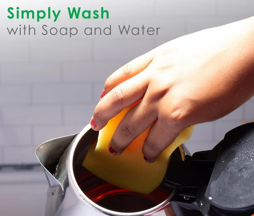 Easy to Clean: Keep your kettle sparkling with simple cleaning using white vinegar, baking soda, water, a bottle brush, and a microfiber cloth.