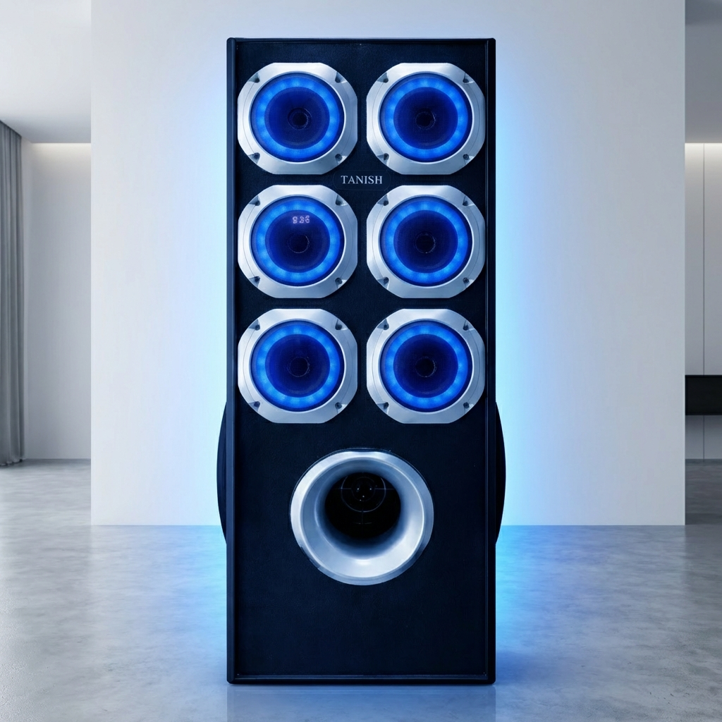 The Tanish PRADO is designed for listeners who want room-filling sound with a bold visual presence. Its tower-style build delivers immersive audio performance while maintaining clarity at high volumes. A rugged cabinet, striking front layout, and party-ready tuning make it ideal for home entertainment, celebrations, and extended music sessions. Built to stand tall and perform louder, PRADO balances style, strength, and sound impact in one premium unit.